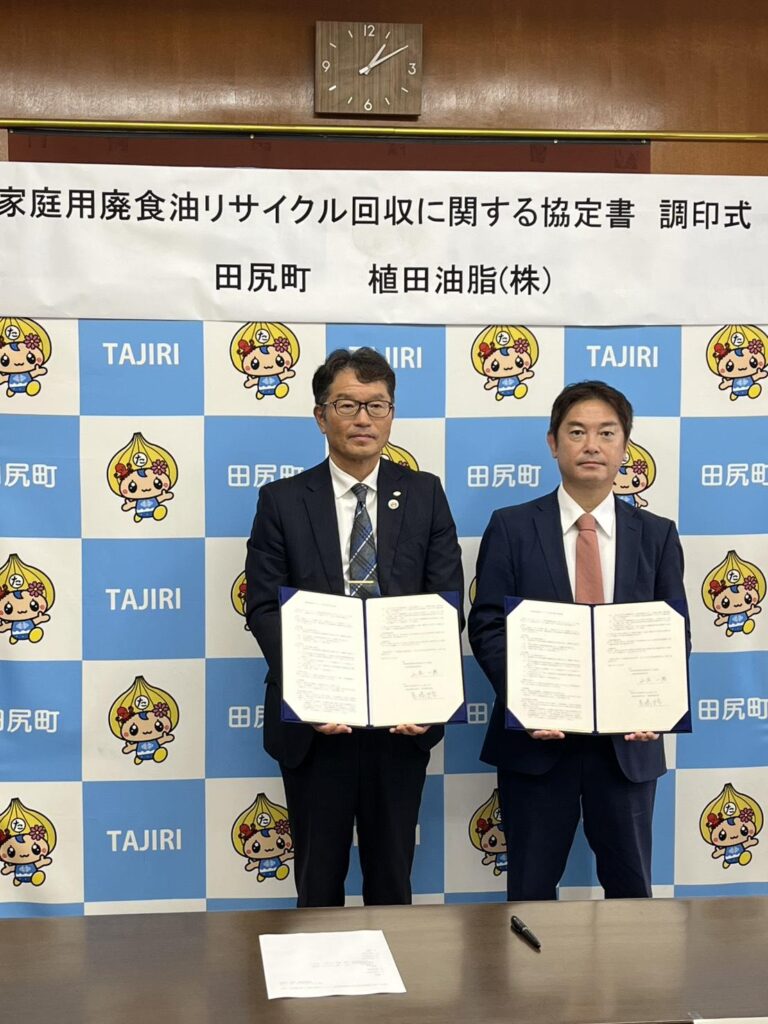 田尻町様と廃食用油のリサイクル回収に関する協定を締結いたしました。