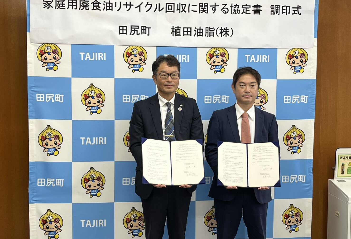 田尻町様と廃食用油のリサイクル回収に関する協定を締結いたしました。