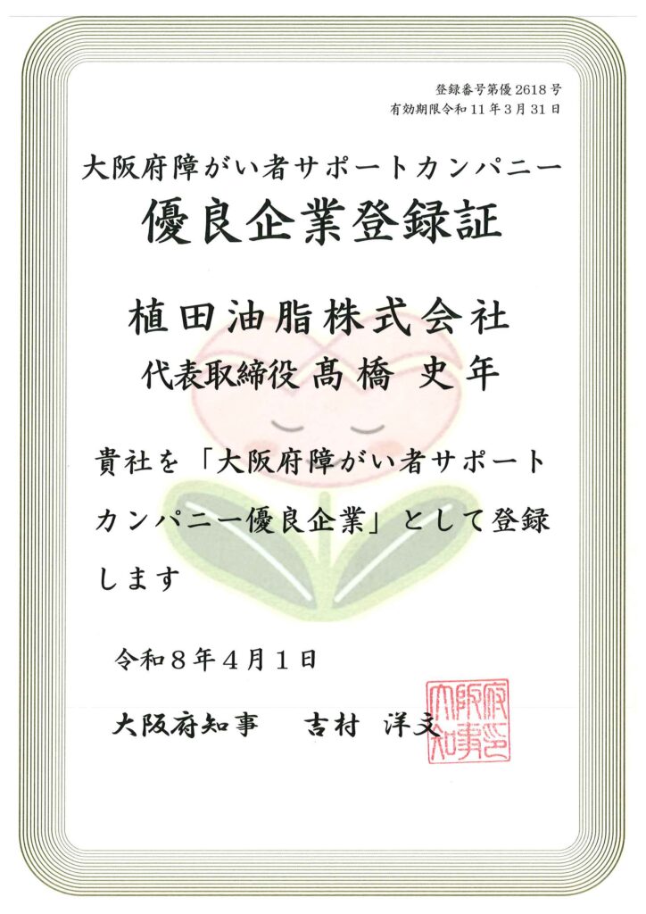 - 健康経営優良法人 / 大阪府障がい者サポートカンパニー優良企業(SDGsの目標 3・4・8)