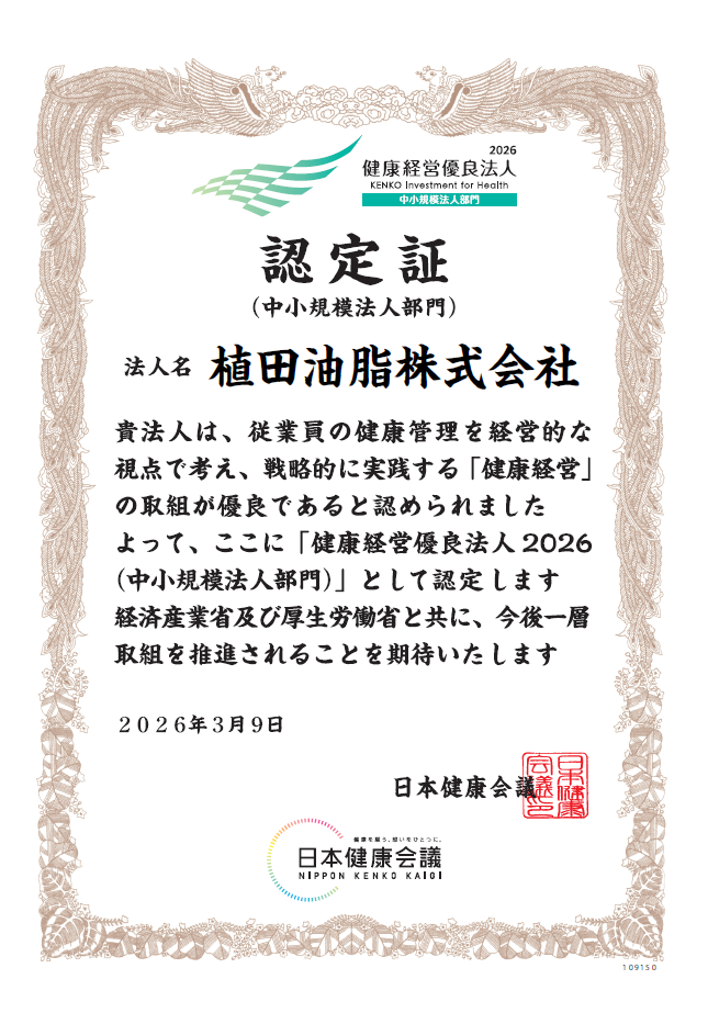 協会けんぽ大阪支部の取組である「健康宣言」にエントリーし、健康宣言の証をいただいております。